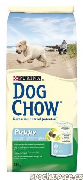 Kompletní a vyvážené krmivo s kuřecím masem a rýží pro rostoucí štěňata od 6 týdnů věku do 2 let. Krmivo je vhodné i pro kojící a březí feny. Dog Chow kombimuje výhody delšího žvýkání a čekanky s prebiotickými účinky. Krmiva Dog Chow také obsahují unikátní směs čekanky jako zdroj přírodních prebiotik, které prokazatelně zvyšují počet dobrých bakterií ve střevech a zlepšují tak trávení. Dog Chow dokáže využít přirozený potenciál vašeho psa. Receptury Dog chow obsahují rýži a přírodní vlákninu z čekanky a řepné dužiny. Rýže přispívá k lepší stravitelnosti krmiva. Čekanka je zdrojem přírodních prebiotik, které zvyšují počet kladných bakterií ve střevech a podporují zdravý zažívací trakt. Řepná dužina je dobře známá pro svou vlastnost zlepšovat kvalitu výkalů. |
